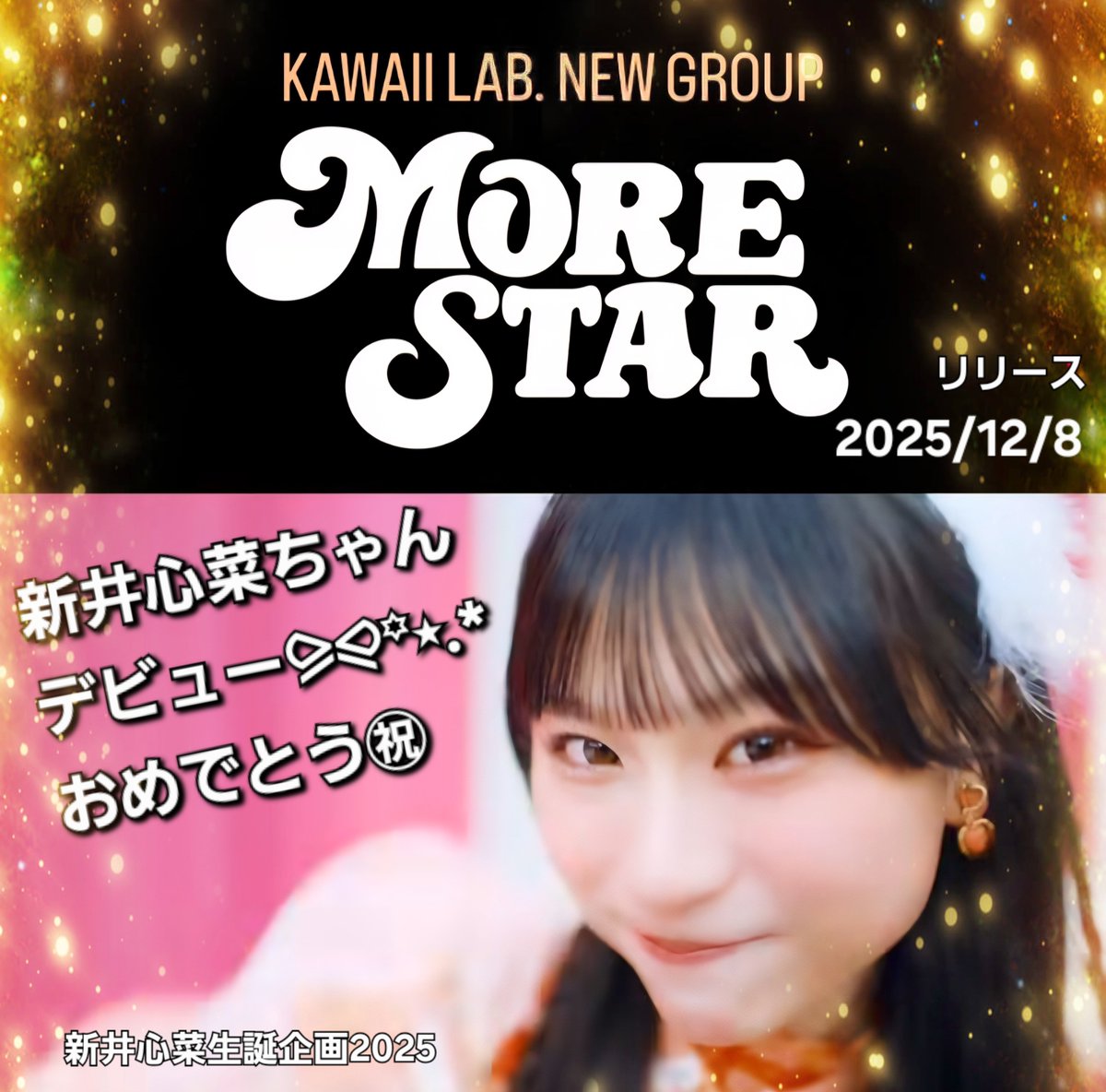 KAWAII LAB.から新グループ「MORE STAR」デビュー! 平均年齢17・8歳の女性9人組 SESSION vol.17」でのデビューが決定した。 メンバーは新井心菜(16)、遠藤まりん(18)、笹原なな花(16)、鈴木花梨(19)、高梨… (出典:デイリースポーツ) |
