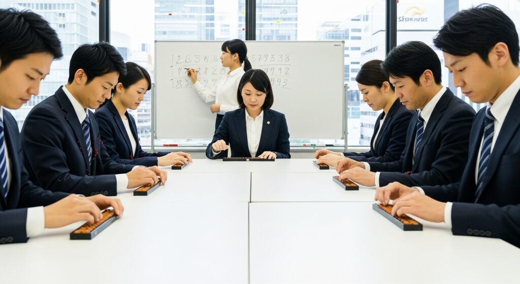 英会話が翻訳技術の発展にもかかわらず直接的な会話能力が求められるように、そろばんもまた機器に頼らない即座の計算が重宝されています。