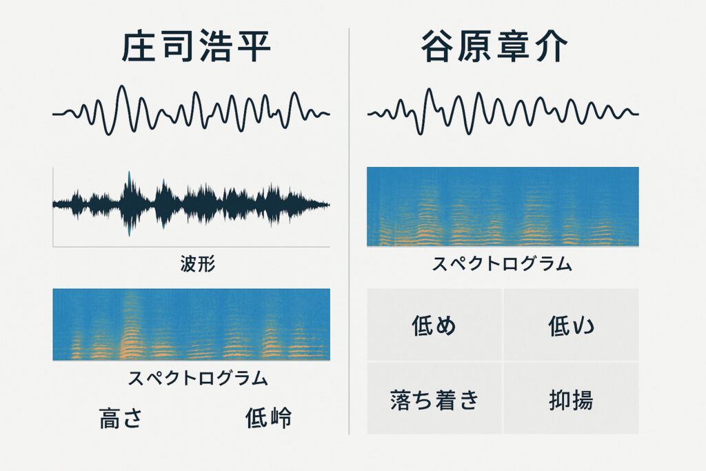 ・ピッチの中心:個人差あり。谷原さんは司会経験ゆえの“安定感”が強く、庄司さんは作品ごとに役のトーンに寄せる柔軟性が際立つ。