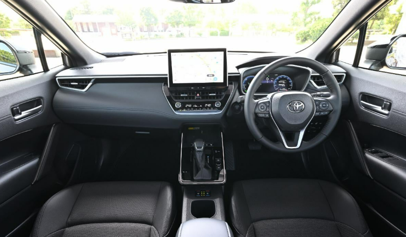 新型カローラクロスは、内外装の質感向上が図られ、使用するユーザーの満足度を高める改良が施されています。まず、内装に関しては主に運転席周りのデザインが刷新されました。特出すべきは、シフトノブの部分の改良です。大型化されたシフトノブとともに、シフトパネルのデザイン変更が行われ、操作性が向上しています。この改良により、運転中の直感的なギア操作が可能となり、運転者のストレスを軽減することが期待されています。