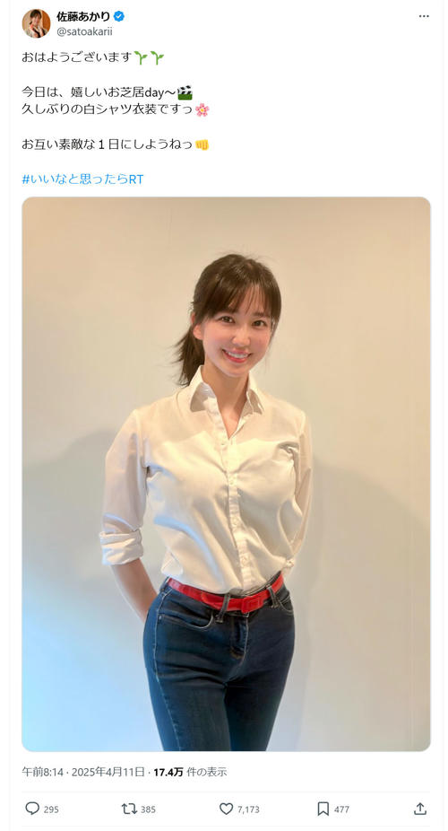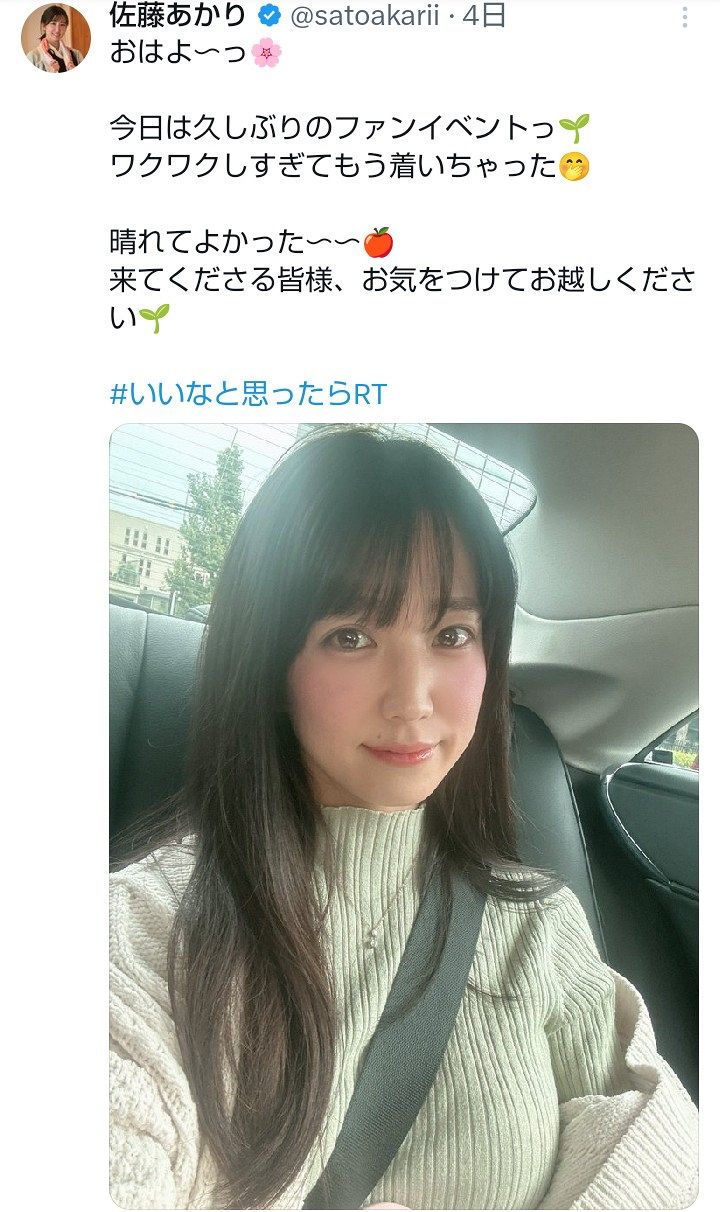 @yamamot38334394返信先:@satoakarii他1人 おはようございます佐藤あかりさん❤ お疲れさまです😊 今日も朝から物凄く綺麗で素敵な可愛いお写真ありがとうございます💖 朝から物凄く可愛い佐藤あかりさんに癒されて見惚れてしまいました😍 本当に物凄く可愛い佐藤あかりさんです❤