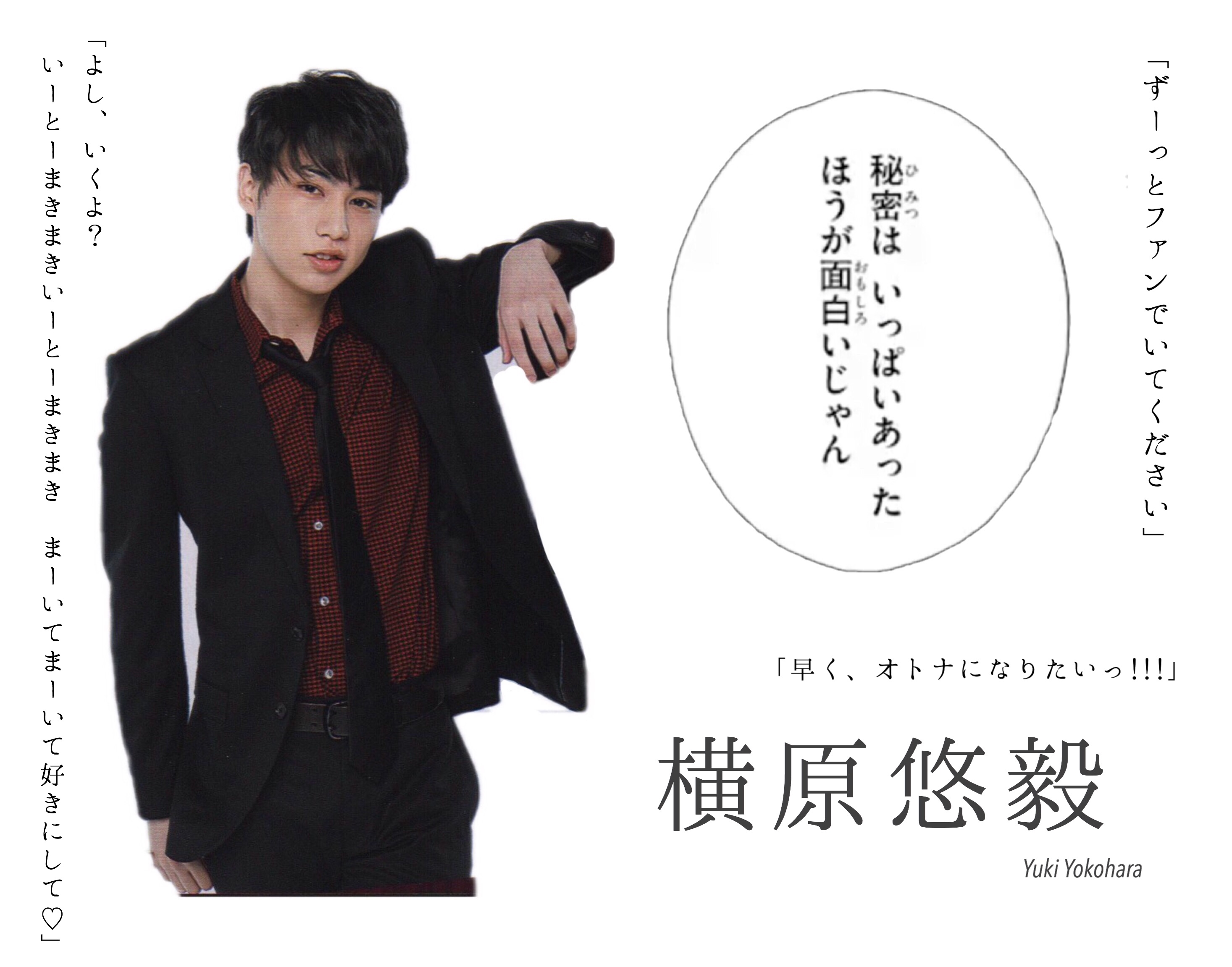 画像提供依頼:顔写真の画像提供をお願いします。(2024年6月) 横原 悠毅(よこはら ゆうき、1996年9月13日 - )は、日本の歌手、俳優、タレントであり、男性アイドルグループ・IMP.のメンバー。 静岡県浜松市出身。TOBE所属。 お笑いが大好きで芸人になりたかったが、芸人へのリスペクトが…